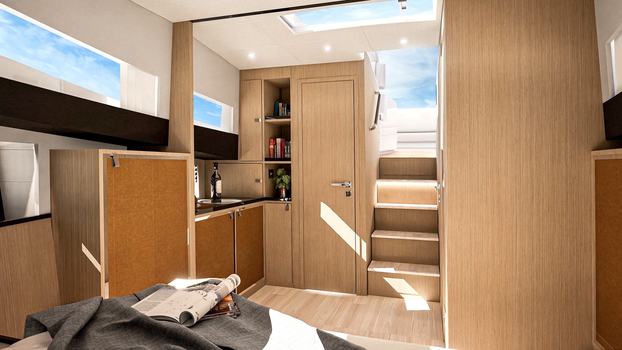 The layout of the cabins can also be customized. The standard setup includes two double cabins, but you have the option to add or remove bulkheads, rearrange beds, or even create a spacious lounge area below deck. This flexibility ensures that the yacht not only meets but exceeds your expectations.